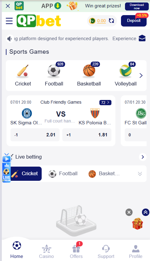 Yes, the platform provides an official QP Bet app download option. Since the app is not consistently available on app stores, players can install the bet629 app directly via the apk file.
